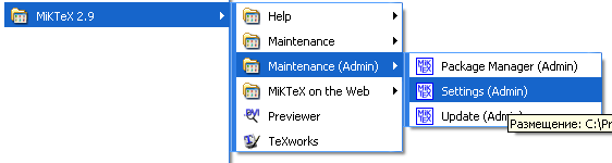 Запустите из меню Пуск – MiKTeX 2.9 – Maintenance (Admin) – Settings (Admin)